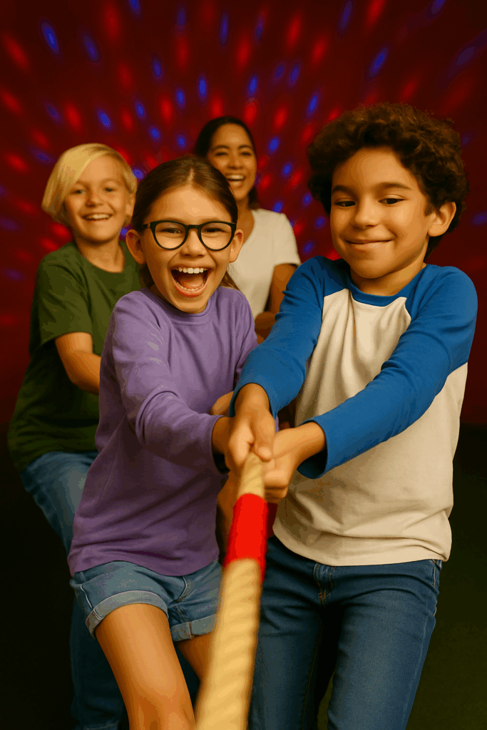 Aktiivisynttäreillä lämmitellään ensin hetki tivolipelien parissa, kierretään temppurataa, etsitään kadonneita eläimiä, leikitään vanhan ajan tapaan yhdessä ja vähän tanssitaankin!