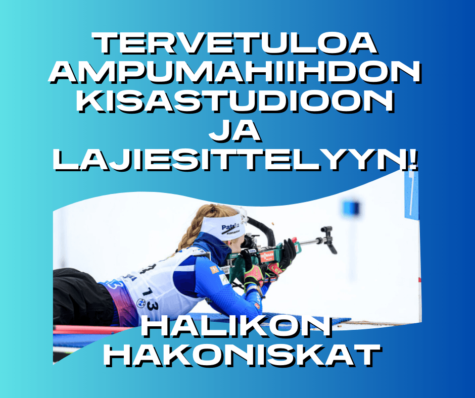 Tutustu ampumahiihtoon ja testaa ammuntaa, turvallisesti! Paikalla lajin asiantuntijoita ja tietenkin suora olympialähetys naisten kisasta! Jännitetään yhdessä Suomen mitalitoivoa!
