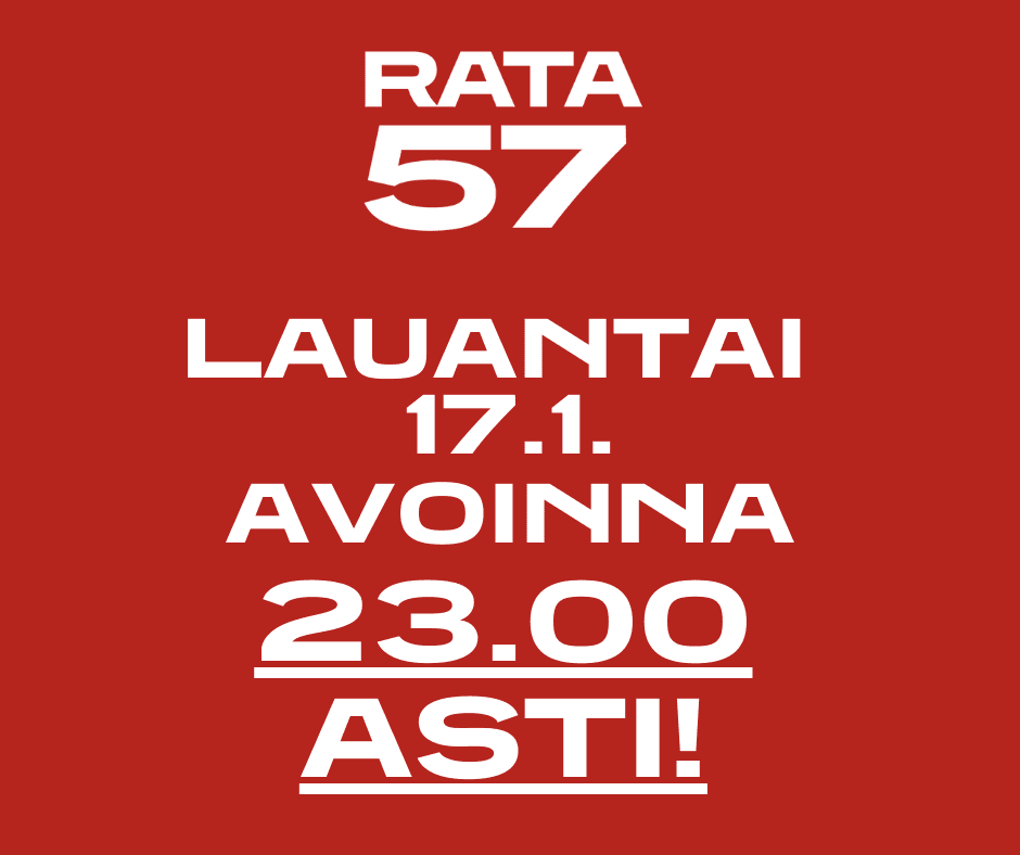 Lauantaina 17.1. Rata 57 poikkeuksellisesti avoinna 23.00 asti! Tervetuloa!